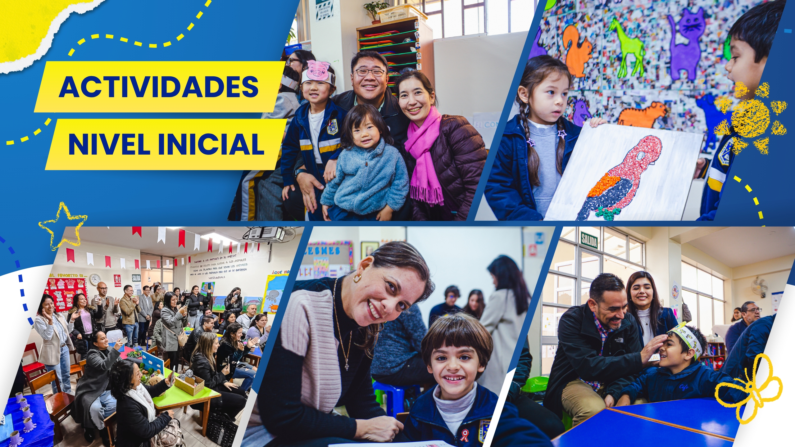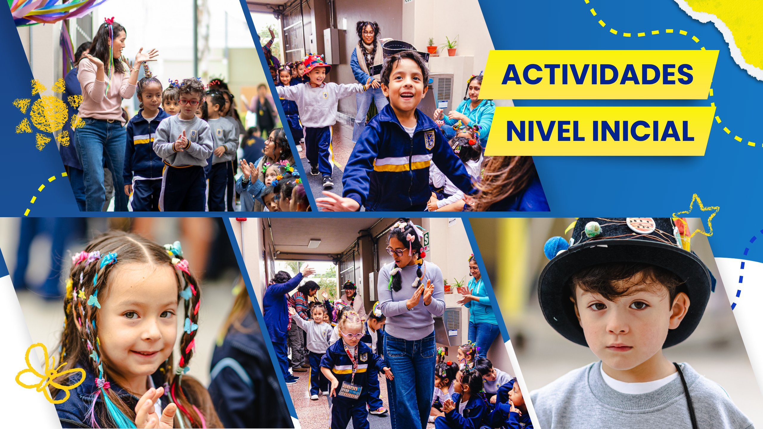 Los niños/as del nivel inicial realizan actividades programadas según las áreas curriculares en relación al proyecto de investigación, psicomotricidad e inglés y participan en talleres de arte, música y folclore.