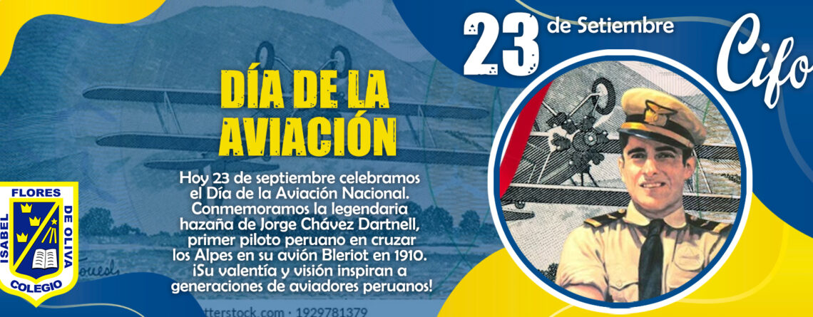 Hoy, se celebra el “Día de la Aviación Nacional” y se conmemora la gesta heroica del aviador Jorge Chávez Dartnell, quien el 23 de setiembre de 1910, logró cruzar los Alpes entre Suiza e Italia a bordo del monoplano Blériot XI. Son célebres sus palabras “Arriba, siempre arriba; hasta las estrellas”, que inspiraron su exitosa actividad aeronáutica y quedaron como lema para los pilotos de la aviación peruana.