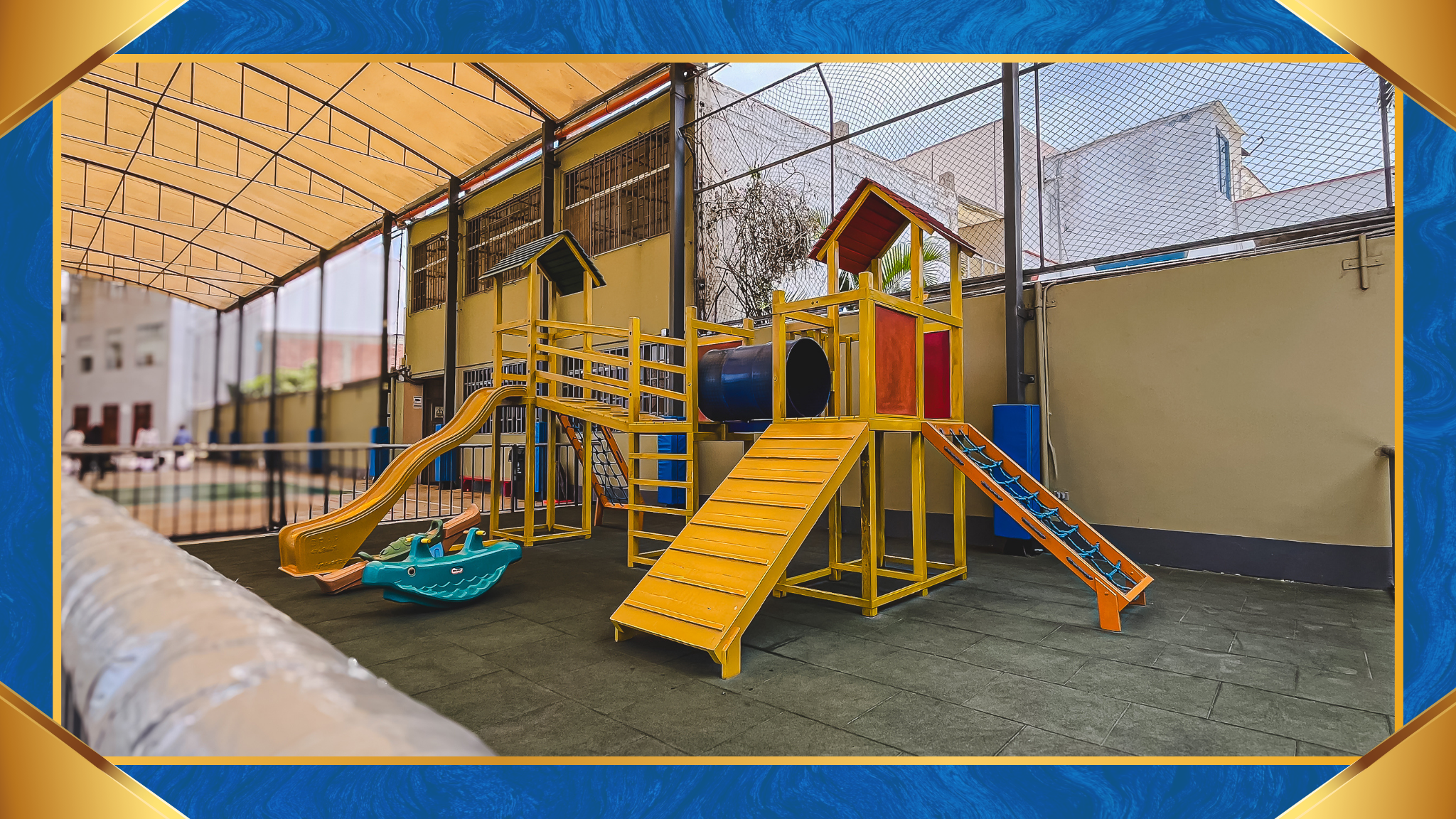 En el nivel inicial contamos con instalaciones adaptadas a la edad de los niños de 4 y 5 años. Cuenta con 4 aulas, una sala para psicomotricidad, salón de artes plásticas y teatro, servicios higiénicos, patio central, una mini-canchita de futbol, el área de juegos.
